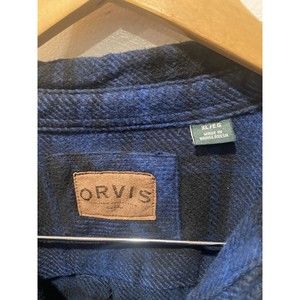 ORVIS LONG SLEEVE HEAVY FLANNEL BLUE BUTTON DOWN SHIRT HAND POCKETS XL. Excellent condition.
