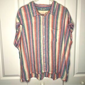 ORVIS Linen Blend Short Sleeve Button Up Size XXL 2XL Striped Multicolor Shirt