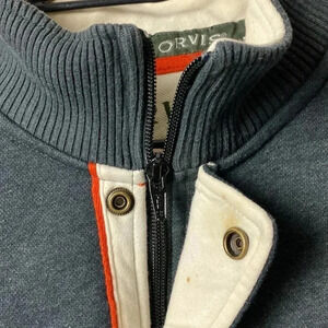 ORVIS MENS SIZE LARGE GRAY FLEECE LINED 3/4 ZIP SNAP CLOSE GOOD USED CONDITION