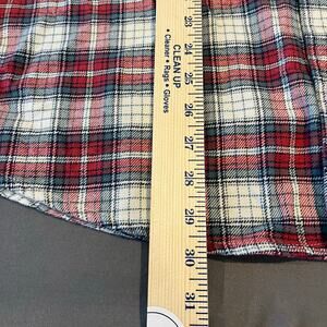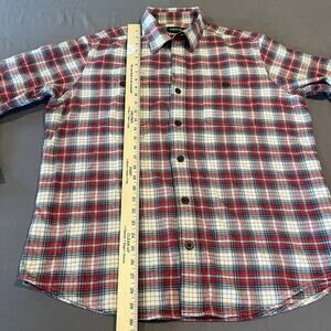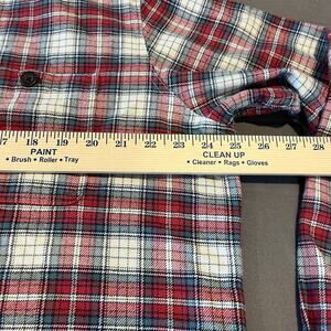 Pure cotton flannel is brushed for incredible softness. Long-sleeve shirt with button-through patch pockets. Distinctive washable faux-suede trim on the outside neckband, bound buttonholes at the pockets, and locker loop. Long shirttail hem stays tucked in. Spread collar, two-button adjustable cuffs. Classic Fit. Excellent condition, please review all photos. Thank you!