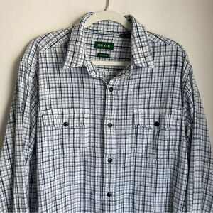 ORVIS Men’s classic fit 100% Cotten plaid long sleeve button down size large EUC