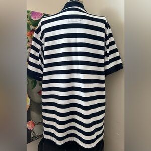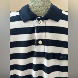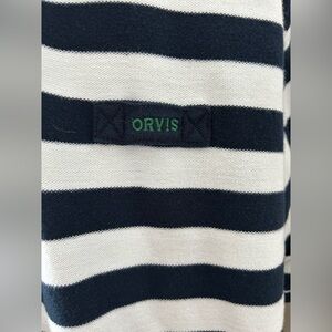 ORVIS SIGNATURE RUGBY POLO SHIRT. NAVY BLUE/WHITE STRIPES. Sz.L