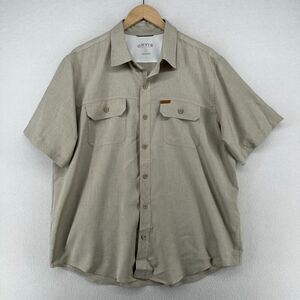 ORVIS Shirt Mens L Stretch Tech Performance Button Front Outdoor Fishing Beige
