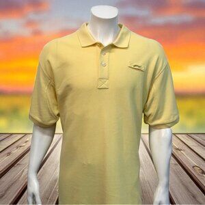 Very Nice ORVIS Signature Yellow Men’s Heavy Cotton Short Sleeve Embroidered Logos Knit Polo Shirt