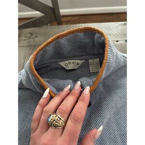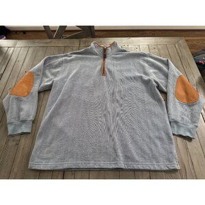 ORVIS Simoom 1/4 Zip Pullover Tweed Sweatshirt Sweater Leather Trim Elbow Patch Blue Size XL Mens