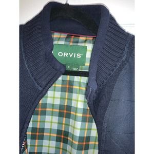 ORVIS Size Small Mens 100% Wool Full Zip Shooting Jacket Bomber Hunting Navy Blue
