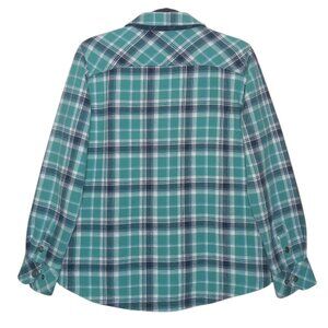 ORVIS | Womens Blue Teal Fleece Lined Plaid Flannel Shacket Snap Button Western
