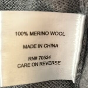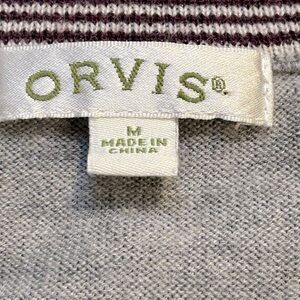 ORVIS Women's Gray  V neck Long Sleeve 100% Merino Wool Sweater Size Medium Sleeves can be turned up to show burgundy stripes Split hem