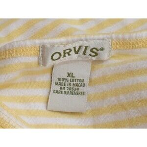 ORVIS Women's Long Sleeve Pull-Over Striped Cotton Shirt Yellow White XL