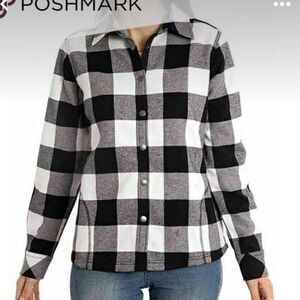 ORVIS Women's Winter Black Buffalo Plaid Fleece Lined Shacket Size Large EUC