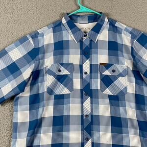 ORVIS XXL Blue White Plaid Short Sleeve Button Down Shirt Dual Chest Pockets