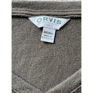 ORVIS knit T-shirt. Olive Green; lightweight & flowy, size XXL. Fabric has a very slight shimmer/Shine. Very lightweight, great for Spring & Summer.