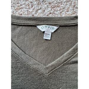 ORVIS knit T-shirt. Olive Green; lightweight & flowy, size XXL. Fabric has a very slight shimmer/Shine. Very lightweight, great for Spring & Summer.