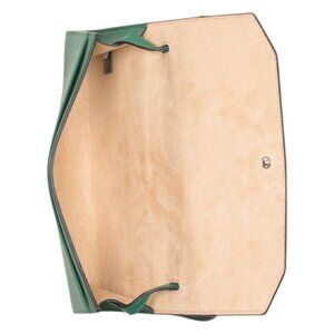 debossed brand logo accent, pebbled finish, adjustable shoulder strap with buckle detail, passport holder included, gift box included