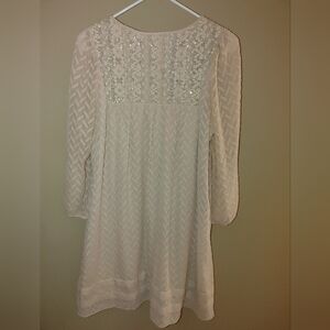 OS Beige Dress with Lace Detailing And Tassels, Size S