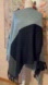 OS Black Blue and Grey Color Block Knit Poncho with Fringe