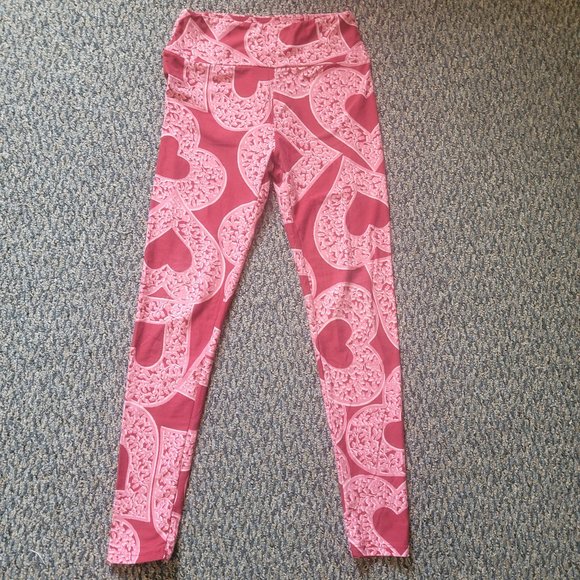 OS LuLaRoe Soft Stretchy Leggings Red Pink Heart Leggings One Size
