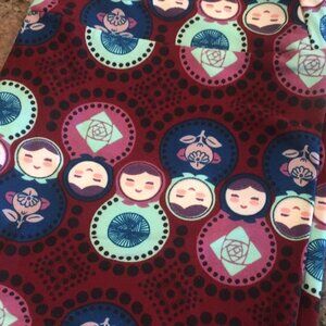 This is a pair of lularoe leggings. They are technically "one size" leggings but I classified them here as a M. These are brand new with out tag. Deep red background with nesting doll print on them. This is a rare and hard to find unicorn print. Price is firm. Thanks for looking.