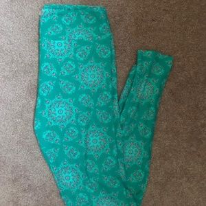 EUC OS lularoe leggings. Teal with mandala like design with pinks / whites