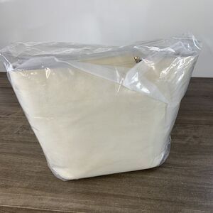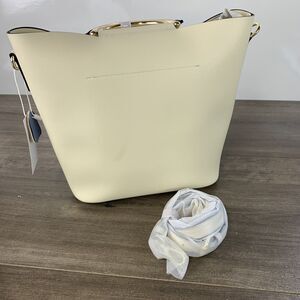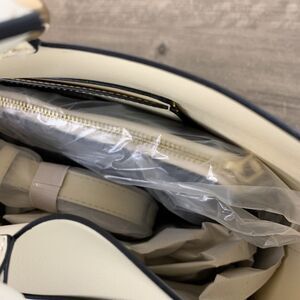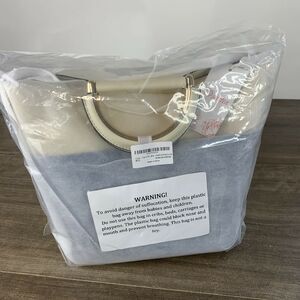 Shoulder Bag or Tote Color Blocked with detachable Pouch Crème & Blue Wristlet