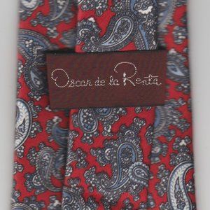OSCAR DE LA RENTA - 100% SILK NECKTIE - RED WHITE & BLUE PAISLEY