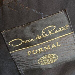 Black tux jacket by OSCAR DE LA RENTA. Excellent condition. No rips, holes or stains noted. Size 40R