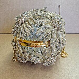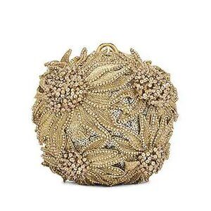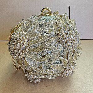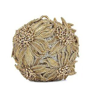 • Oscar de la Renta Crystal Sunflower Embroidery Billiard Bag in Beige Crystal embellished and embroidered exterior with leather lining
