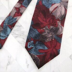 OSCAR DE LA RENTA Flora Print Burgundy Tie .