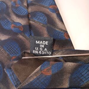 OSCAR DE LA RENTA Men’s Blue Brown Geometric Silk Tie Designer Classic Retro
