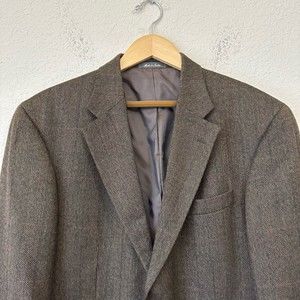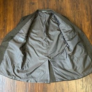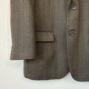 OSCAR DE LA RENTA Mens Brown Chevron Lambswool Sport Coat Elbow Patch Sz 42R M2127