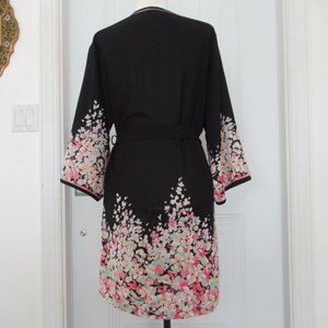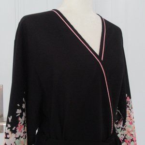 OSCAR DE LA RENTA PINK LABEL VINTAGE BELTED FLORAL ROBE Size Small Black Multi