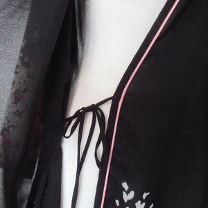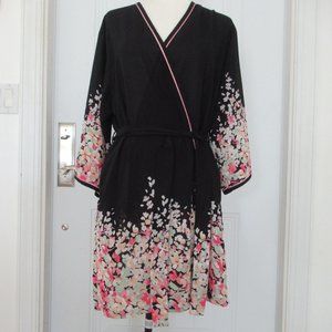 OSCAR DE LA RENTA PINK LABEL VINTAGE WRAP, BELTED FLORAL ROBE, Ties with belt; this lovely, semi sheer robe has two pockets.