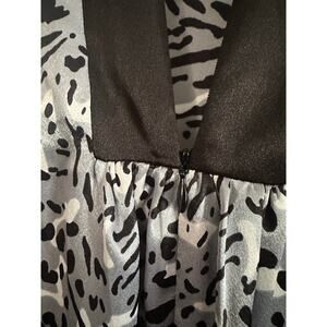 OSCAR DE LA RENTA Pink Label Gray Black Animal Print Satin Housecoat Robe - Sz S