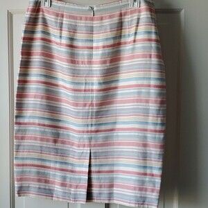 OSCAR DE LA RENTA STRIPED SKIRT WHITE PINK BLUE YELLOW SIZE 10