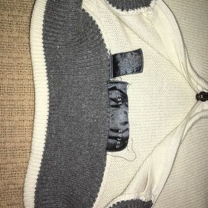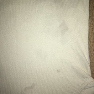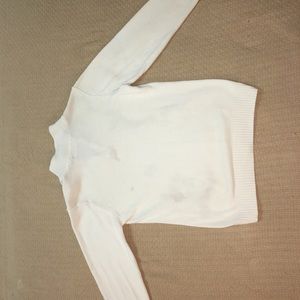 Beautiful sweater, needs a solid cleaning( shown in pictures) this sweat will best suit someone willing to bleach it back to perfection. Still plenty of wear left in it. All stains and imperfections shown