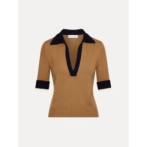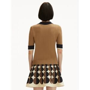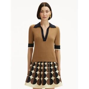 OSCAR DE LA RENTA Short Sleeve Color Block Pullover Top in Walnut Navy XS