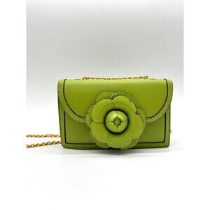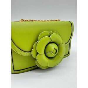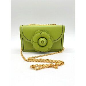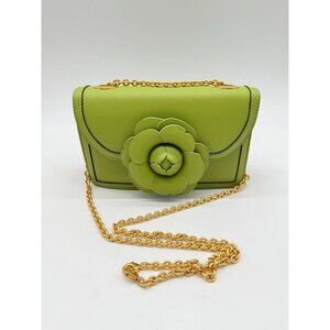 OSCAR DE LA RENTA Tro Nappa leather gardenia applique shoulder crossbody -GREEN