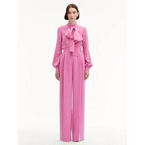 OSCAR DE LA RENTA Wide Leg Silk Georgette Pants