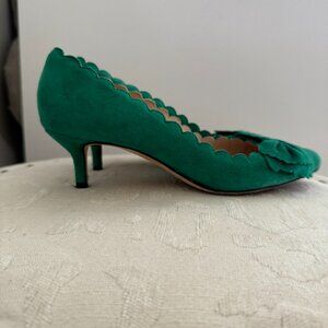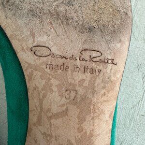 OSCAR De La RENTA Scala Scalloped Suede Green Shoes Pumps w Bow Kitten Heel 37