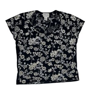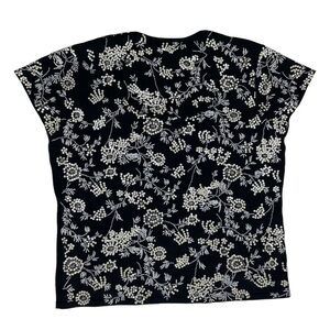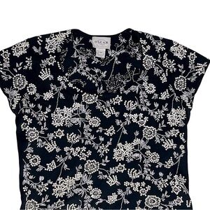 OSCAR OSCAR DE LA RENTA 90s FLORAL SEQUIN EMBROIDERED COTTON SHORT SLEEVE TOP