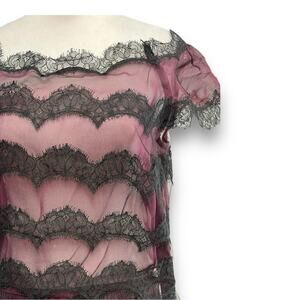 OSCAR de la RENTA✨🎄🥂Vintage Sheer black lace & pink almost off shoulder top SZ