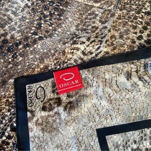 OSCAR de la renta Scarf Black Brown 100% Silk Animal Pattern Scarf 34 x 34