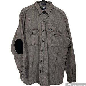 OSCC Shacket Leather Elbow Patches 100% Cotton Herringbone Brown & Tan Size XL