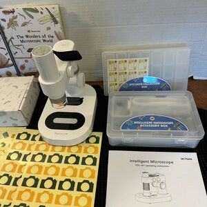 The OSCTAN Intelligent Microscope is a digital microscope kit that also includes a wide variety of accessories and a nice inspiration book and journal to encourage kids to discover on their own. It uses an app (iOS and Android) to act as the viewfinder for the microscope, which lets kids and adults alike view the observed specimens on a larger screen with ease. The kit is designed and marketed to kids, but could be used by anyone.