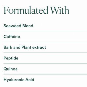 º Key Ingredients: Seaweed blend, Caffeine, Bark and plant extract, peptides, quinoa, hyaluronic acid