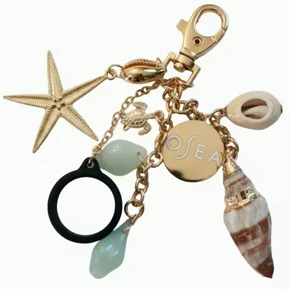 Keychain: The chain is made of iron, the logo plate and other metal accessories are made of zinc alloy. Features natural shells that vary.