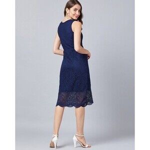 OSERJEP Scallop Eyelet Floral Lace Surplice V Neck Sheath Midi Dress Back Slit S