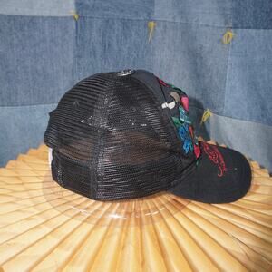OSFA - Vintage / Y2K ed Hardy by Christian audigier eternal love embroidered crazy graphic heart, flowers, big logo, Bill embroidery trucker hat, 2000s era essential grunge mall, goth preppy style black color way