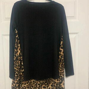 OSFM Beeson River black/leopard print long sleeve pullover with side pockets. Oversized with swing fit appearance. 95% polyester 5% spandex. Gently used but great condition to add to any wardrobe! Soft and comfy.