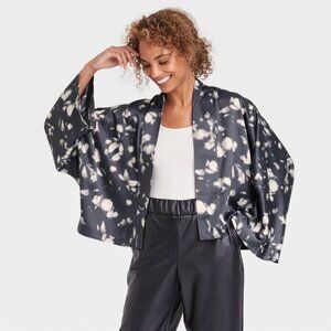 Add a layer of style to your outfits with this Floral Print Short Duster from A New Day . This short duster jacket makes a fashionable layering pick. Designed with wide lapels, it features a loose casual silhouette with wide long sleeves for relaxed appeal, along with a cream abstract floral pattern on a black backdrop for a chic contrasting look. The lightweight fabric offers a comfortable fit, while the open-front style allows for easy layering and wear. Wear over tanks, tees and jeans or over your dressy outfits for versatile styling options.